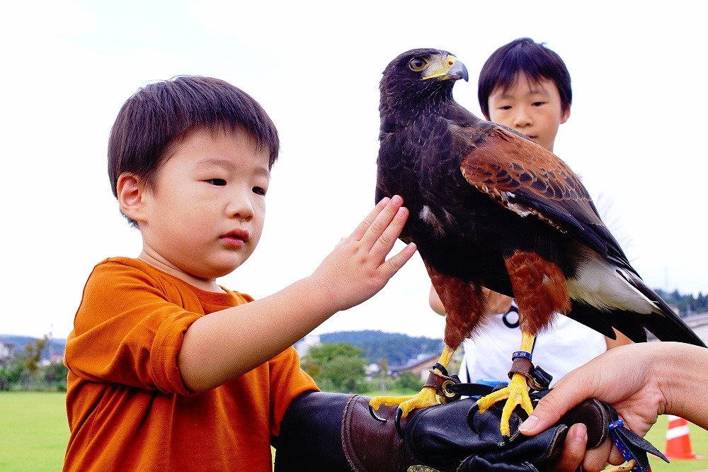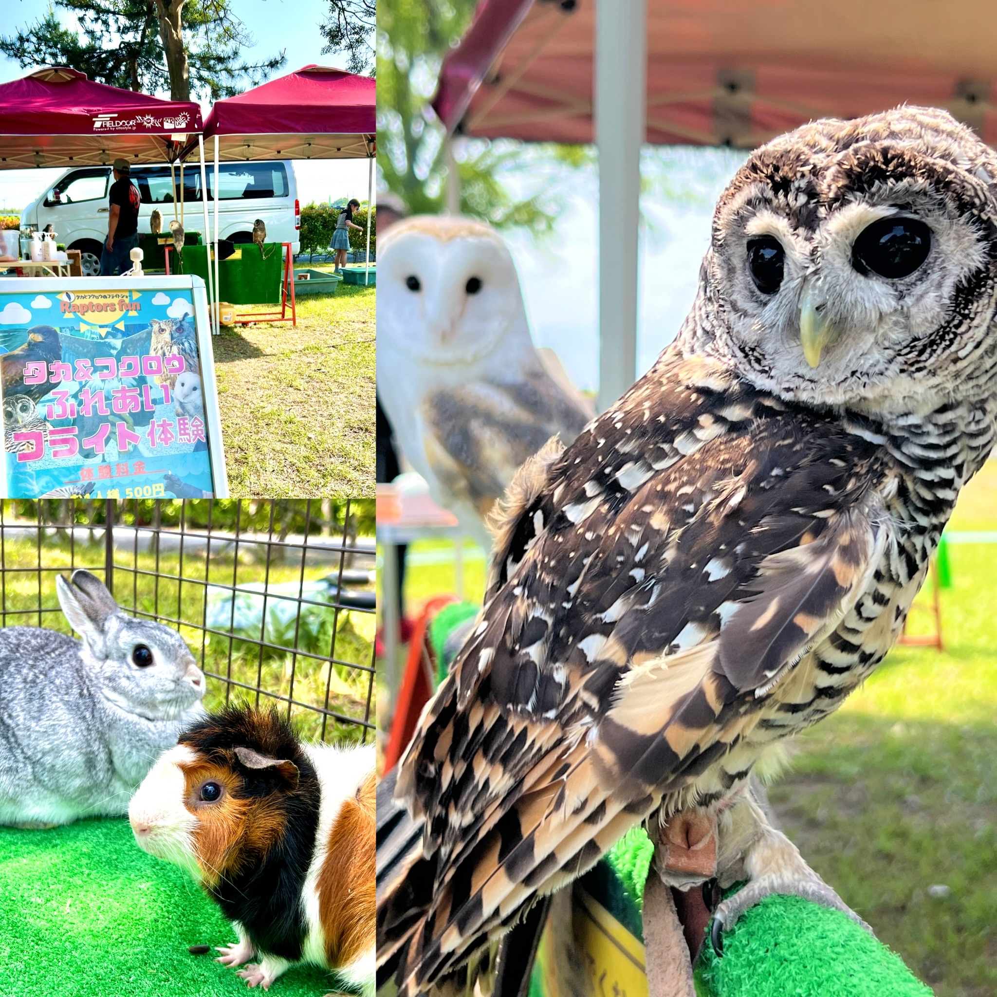 かっこいいタカを手に乗せたり、フクロウの羽にさわってみたり、かわいいウサギやモルモットを撫でたり、小さなネズミさんを抱っこしたり、、